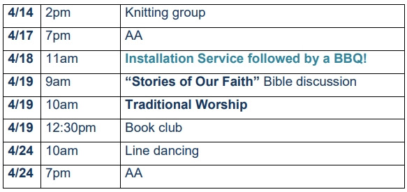 Starting February 1, worship is at 10am. Worship may be traditional or non-traditional/traditional or something new. Our full-time pastor may be leading worship or worship may be lay-led. Every week there will be other opportunities to join together for conversation, play, worship and more!
